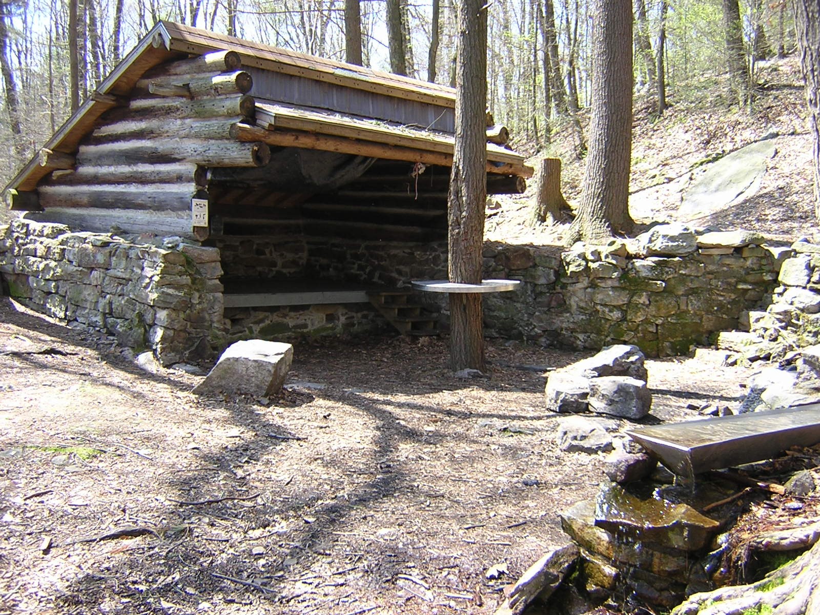 ![]() ![]() Ruin of a house foundation and an abandoned well at Rausch Gap. Photographs by Annette (Watts) Logan In 1945, the tracks were torn up and the whole town, along with the rest of Stony Valley, was deserted. Rausch Gap and Cold Spring (the station to the west) were both used as training grounds for Fort Indiantown Gap in the 1940’s and 1950’s. The Pennsylvania State Game Commission purchased the land around this time period, and turned the area into State Game Lands #211, with the old railroad bed becoming a rail-trail. From 1972 to 1974, an archaeological dig was done by a group of Northern Lebanon High School students at the site of the former town. In 1973, the Blue Mountain Eagle Climbing Club also built the Rausch Gap Shelter for the Appalachian Trail (the original shelter shown below). In 2012, the "Hilton of the AT" was rebuilt by the Blue Mountain Eagle Climbing Club. The Susquehanna Appalachian Trail Club currently maintains the Rausch Gap section of the Appalachian Trail.