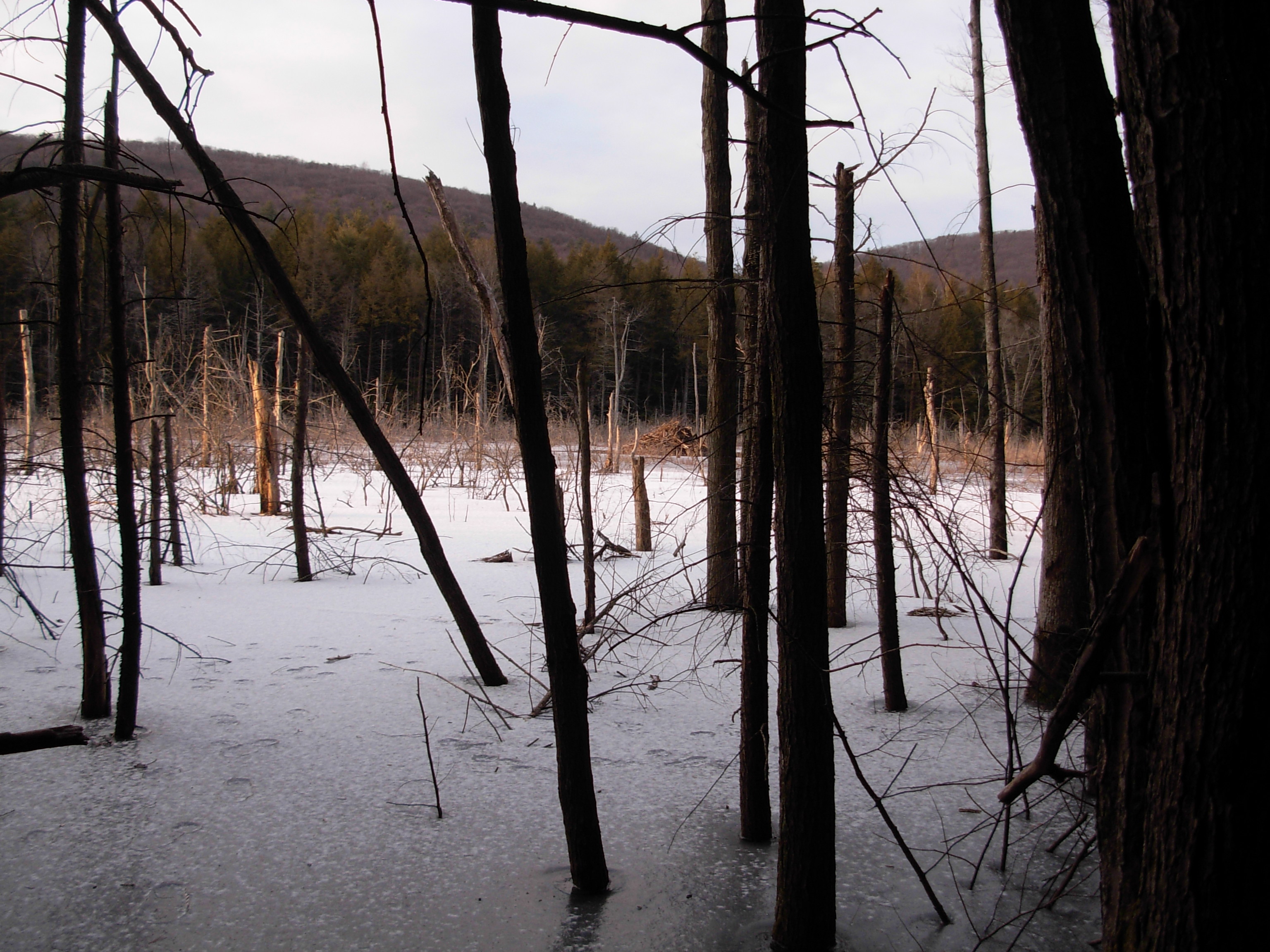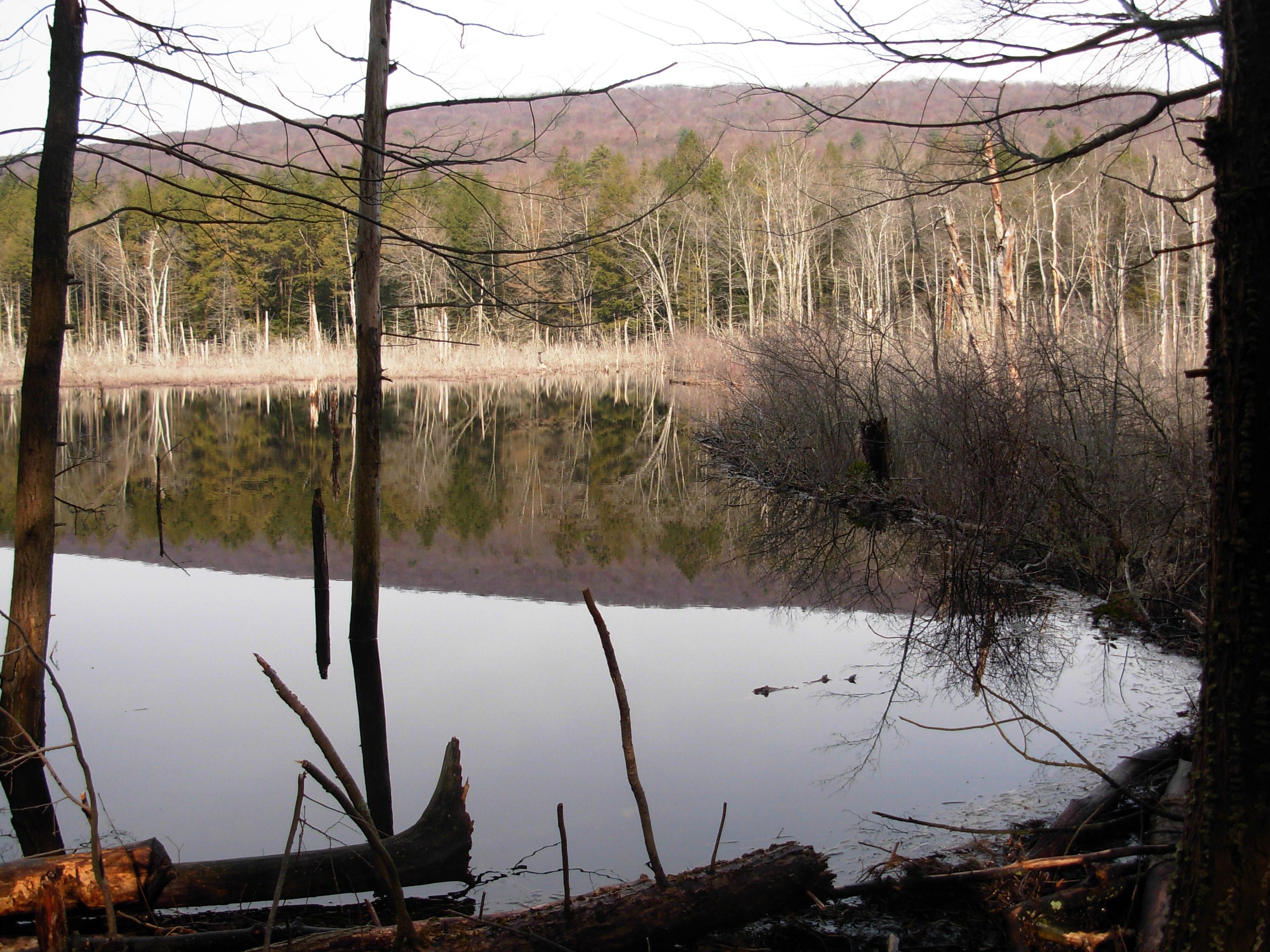 A series of three beaver dams made this swamp, the dams holding through Hurricane Ivan in 2004. By the end of the storm, the swamp extended its bounds to the Stony Valley Rail-Trail. Today it can still be found hugging the edges of the rail-trail, starting only a ten minute walk in from the Western Rail-Trail Parking Lot on Gold Mine Road. Take the hike around the swamp in the early dawn or late evening and you may be lucky enough to see the American Beaver that inhabit it.